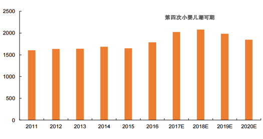 建國之后我國共經(jīng)歷了三次嬰兒潮,分別是“建國后”嬰兒潮、“三年自然災(zāi)害后”嬰兒潮、八十年代嬰兒潮;進入 2017 年,八 十年代嬰兒潮中出生的人口年齡跨度為 27-36 歲,上一輪人口高峰中出生的人口正處于適宜生育的年齡,其中大部分人群都已經(jīng)成家立業(yè), 家庭生活穩(wěn)定;所以有望迎來第三次嬰兒潮的回聲潮,帶來第四次嬰兒潮。